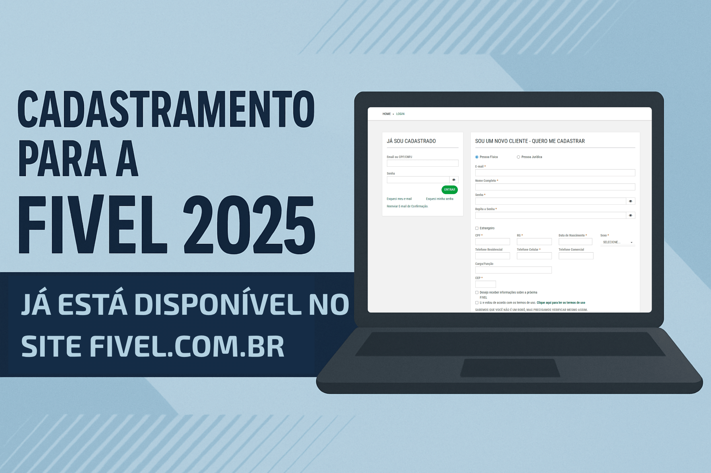 Para quem deseja acompanhar todas as novidades da FIVEL 2025, é possível marcar a opção “Desejo receber informações sobre a próxima FIVEL” durante o preenchimento do formulário. É necessário também aceitar os termos de uso antes de concluir o cadastro clicando em “Cadastrar”.